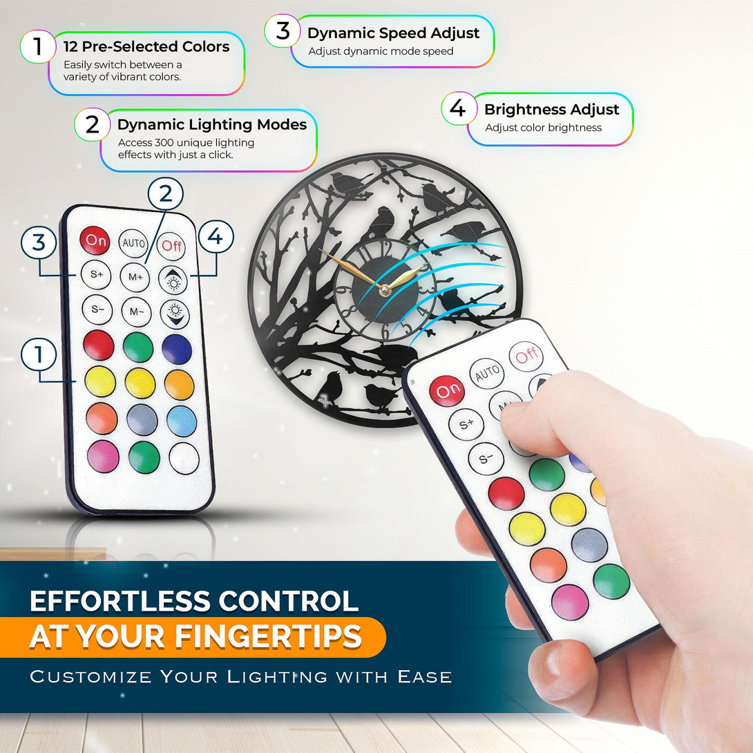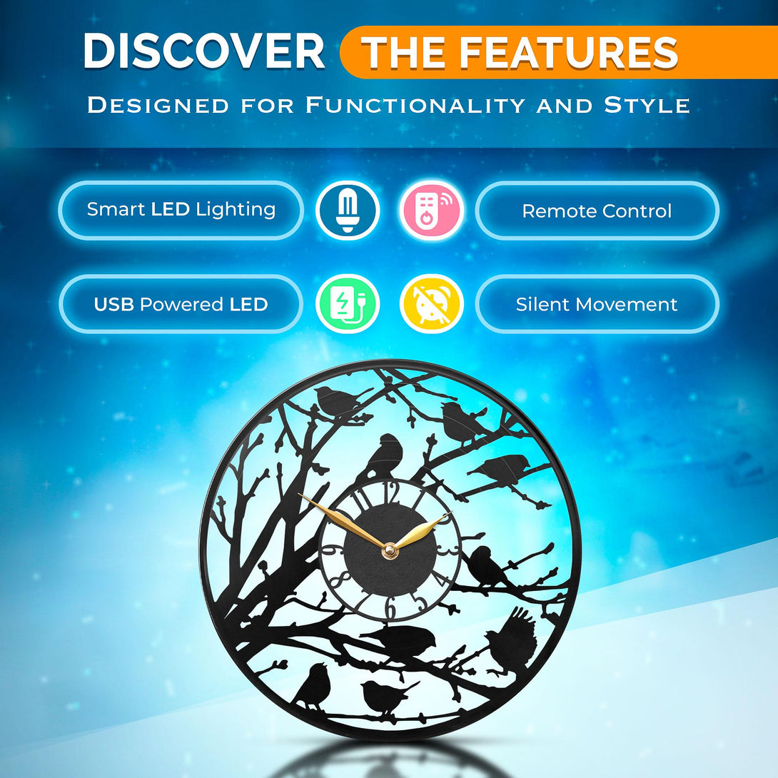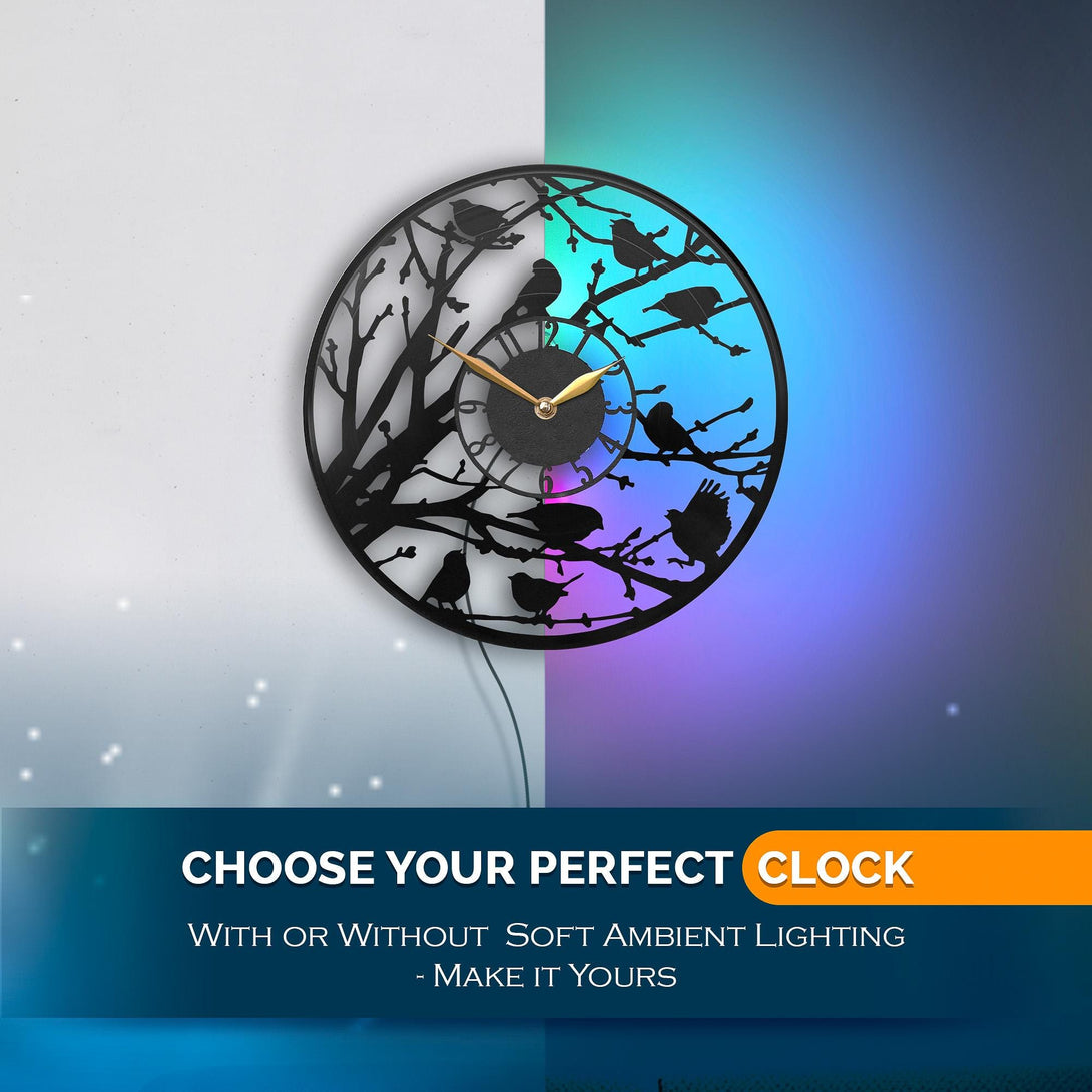Bird Clock with Led Light, Kitchen Wall Decor, Gift Idea, Nature Themed Clock, Birds Lovers Gift